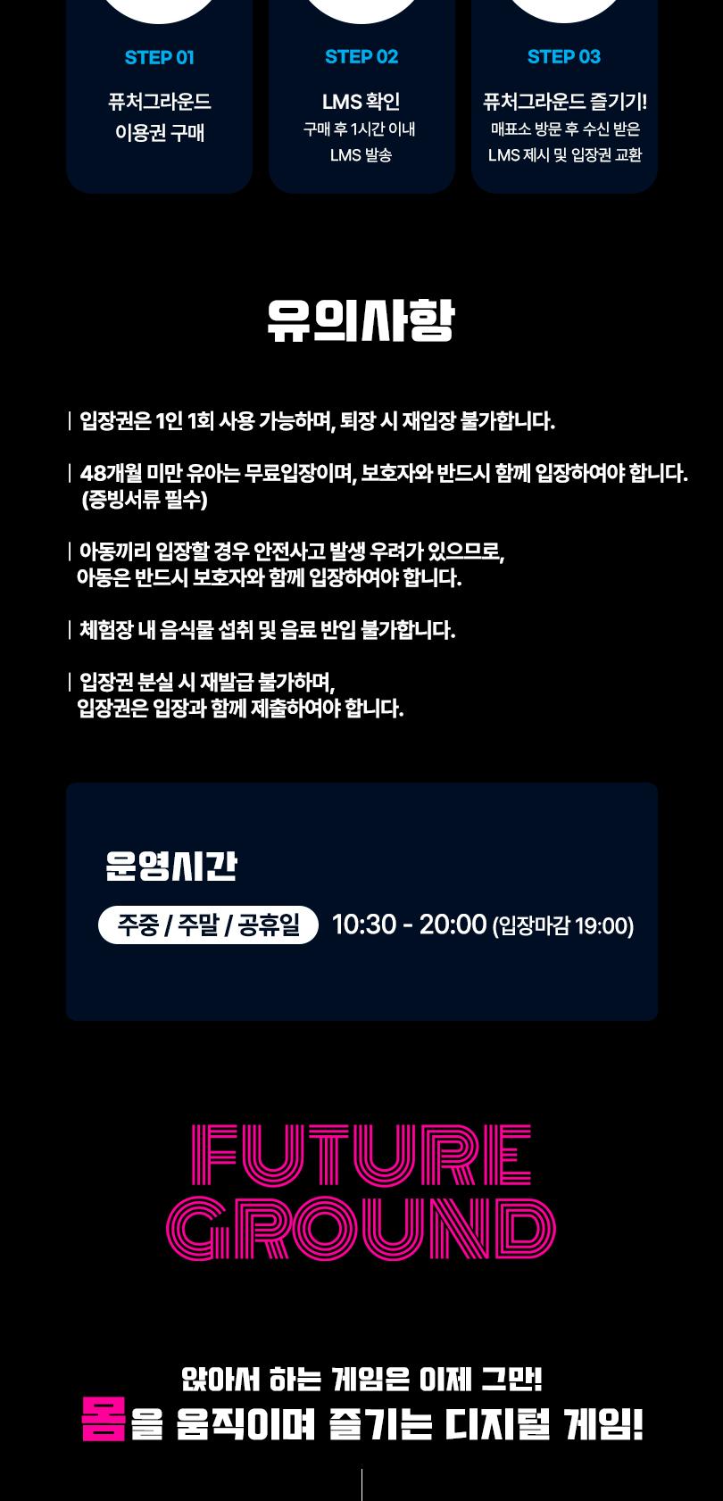* 아동끼리 입장할 경우 안전사고 발생 우려가 있으므로, 아동은 반드시 보호자와 함께 입장하여야 합니다.