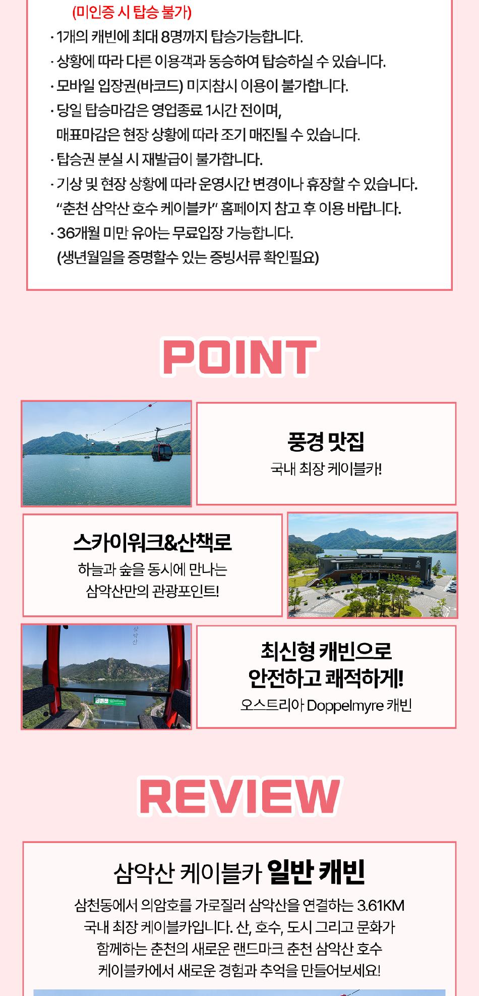 * ※ 삼악산호수케이블카 : 방문 2시간 전 구매 필수