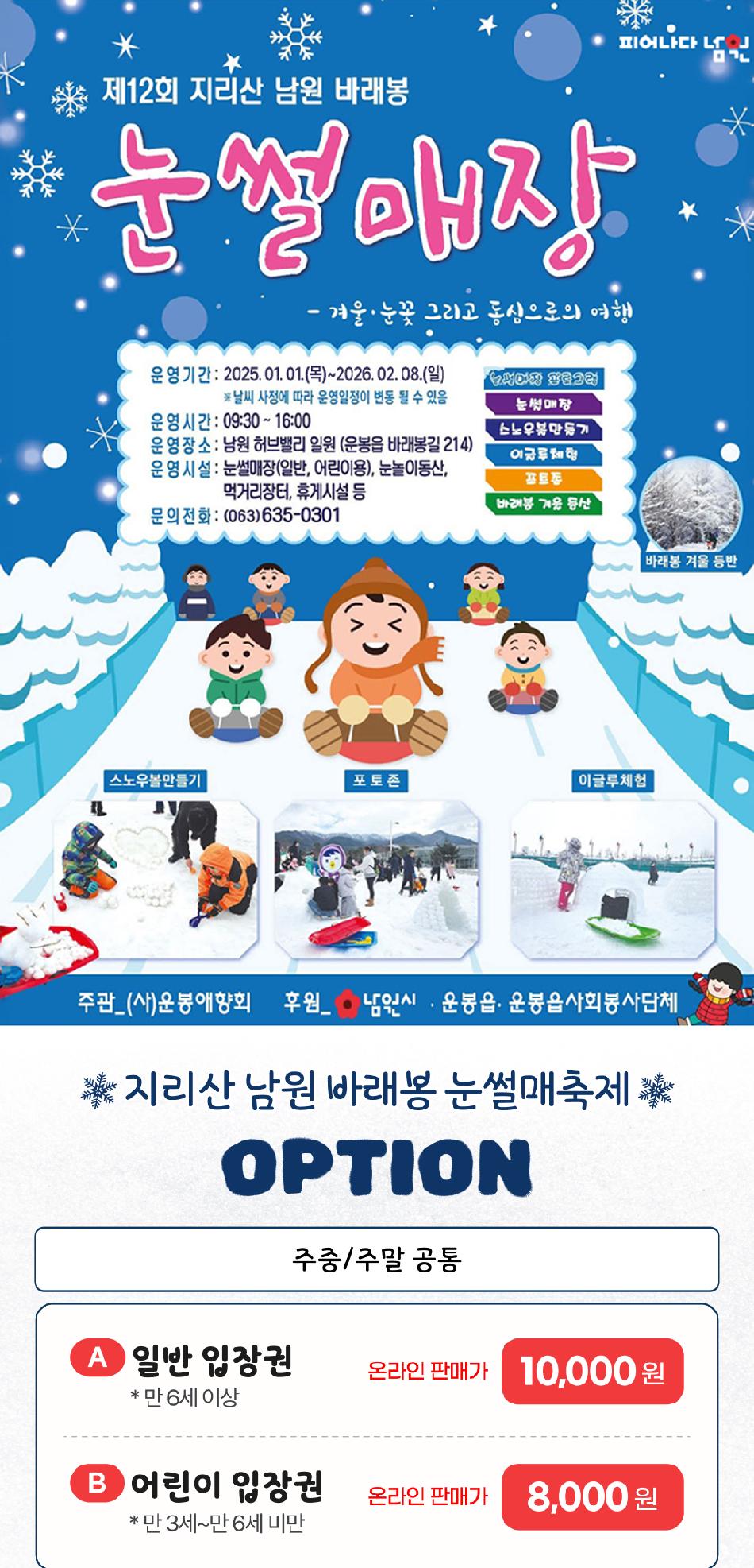 * 무료 입장 기준: 만 3세 미만, 운봉주민 (증빙서류 지참 필수)