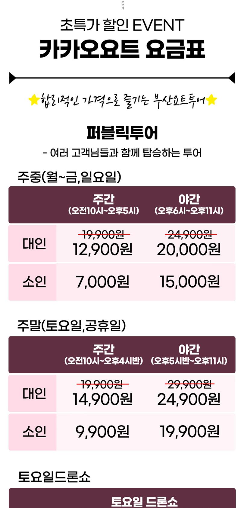 * 주중 : 월~금,일요일 / 주말 : 토요일&공휴일