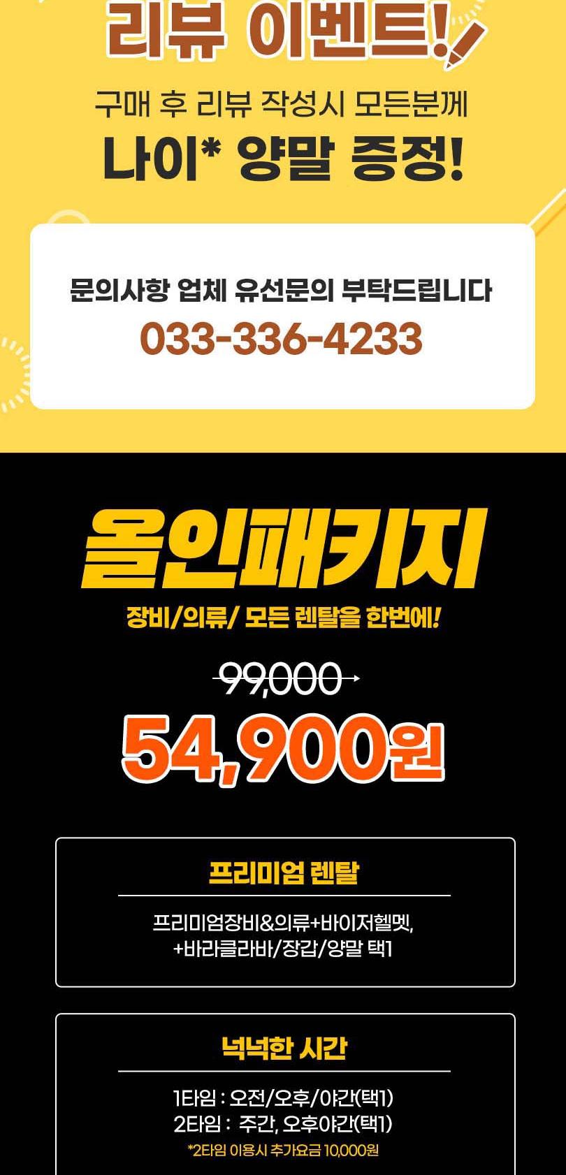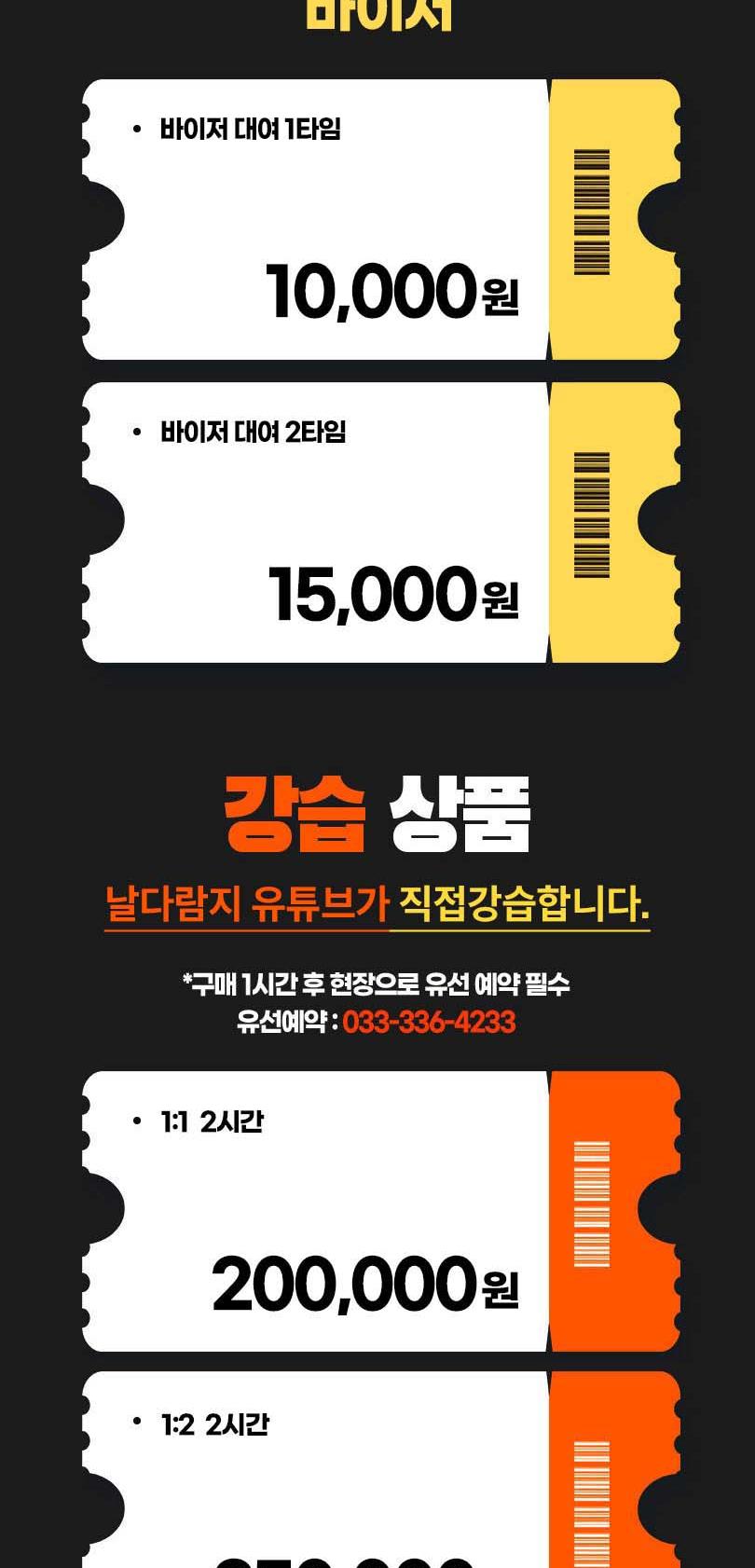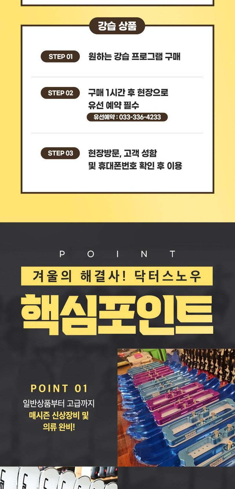 * 강습 상품은 구매 후 전화예약 필수 (유선예약 : 033-336-4233)