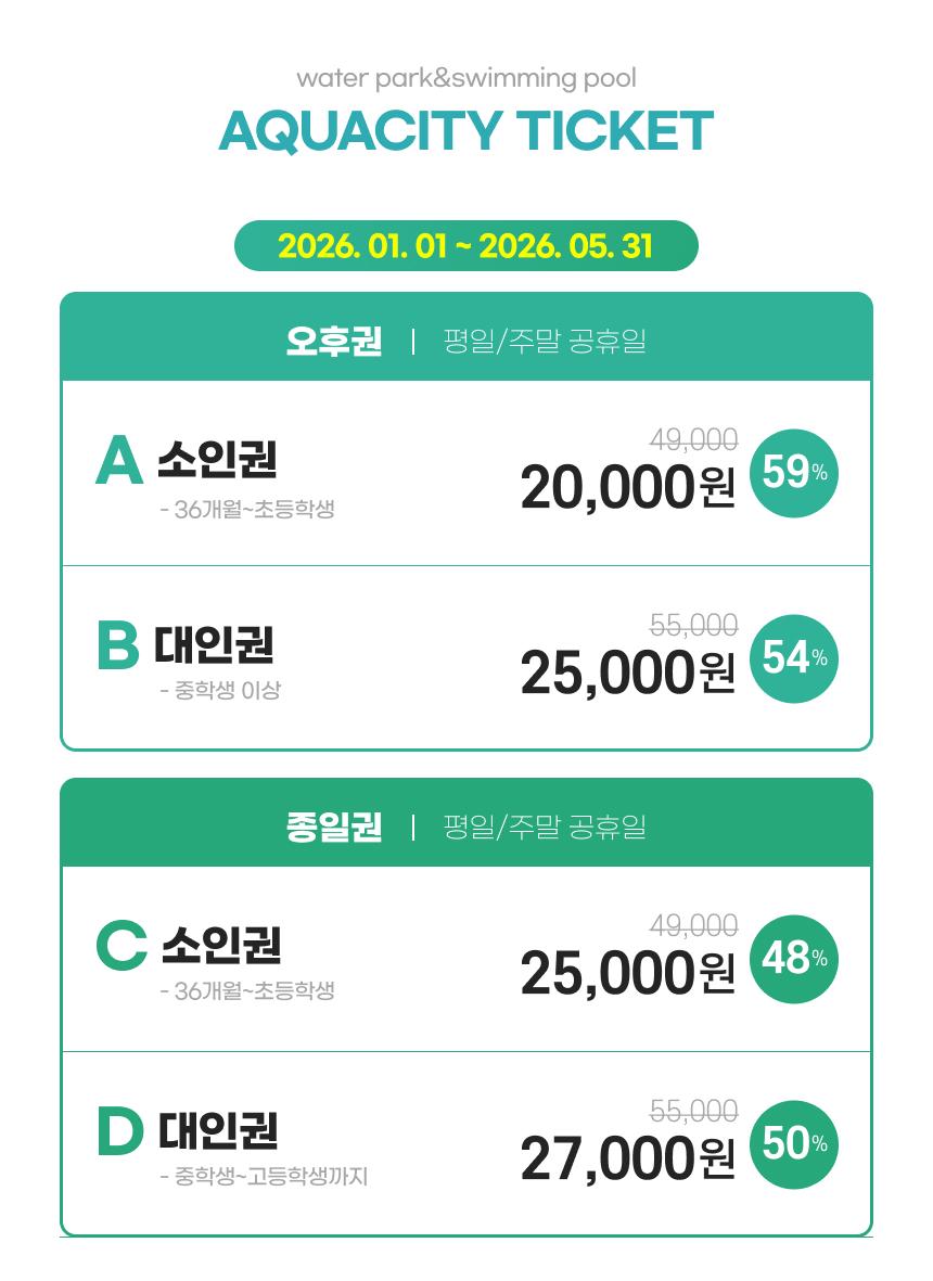 [광주] 아쿠아시티 스파 워터파크 이용권