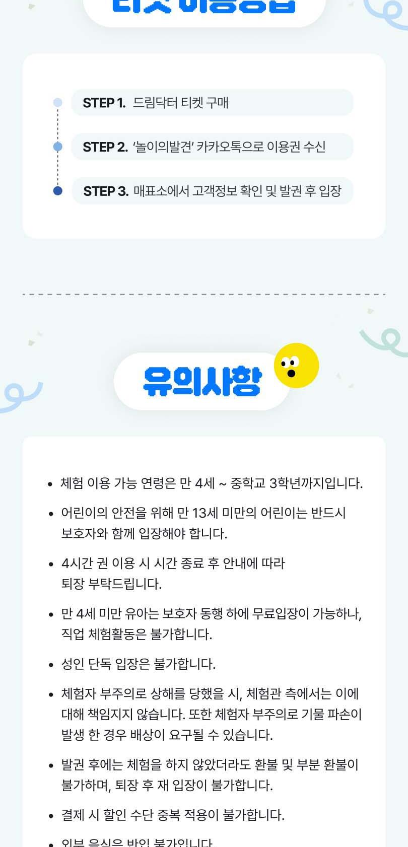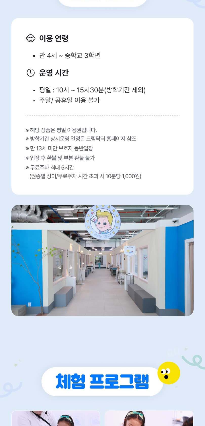 * 1. 체험 이용가능 연령은 만4세~중학교 3학년까지입니다.