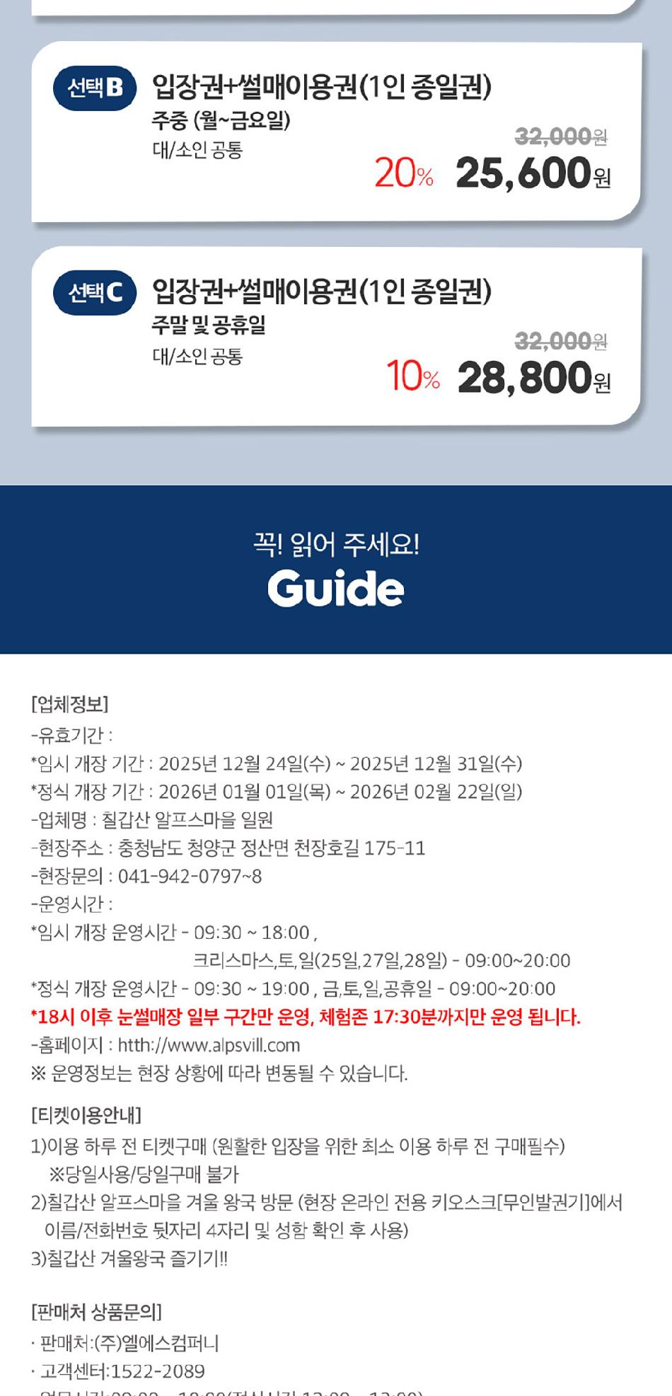- 상품유효기간과는 무관하게 지정날짜에만 이용하셔야하며