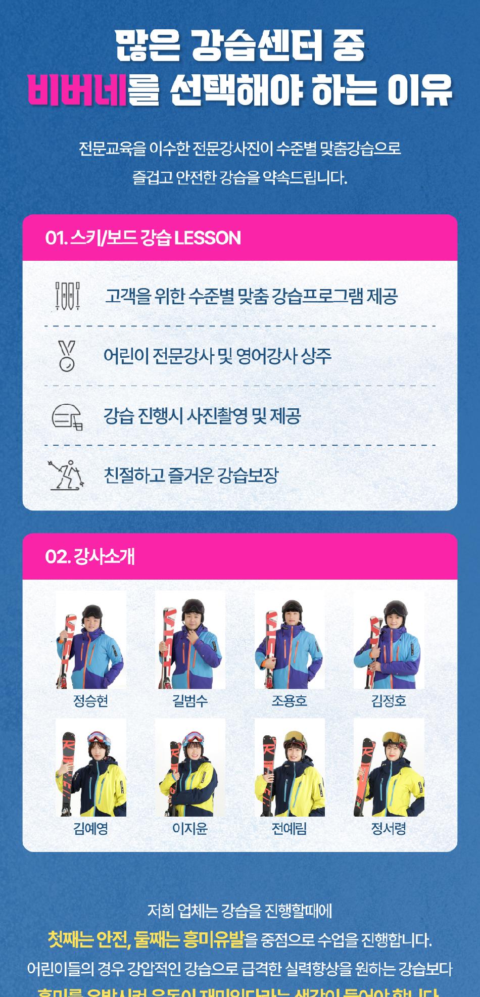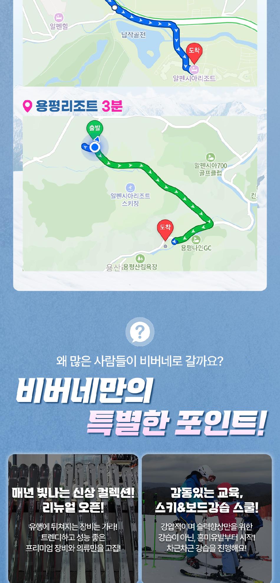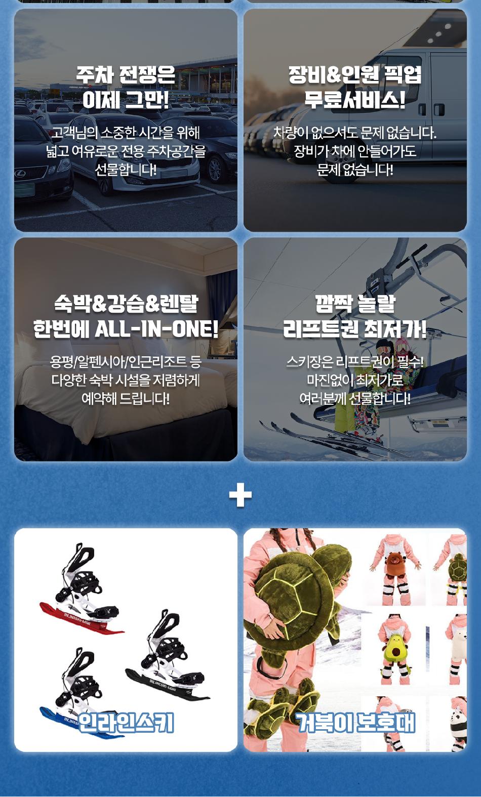 - 스키장 도착→비버네렌탈샵으로 이동→렌탈+리프트권등 모든 준비완료→전부 챙겨서 스키장으로 다시 이동→신나게 즐기고 난 후→비버네렌탈샵으로 전화→비버네렌탈샵 차량에 전부 반납→귀가 또는 숙박♥
