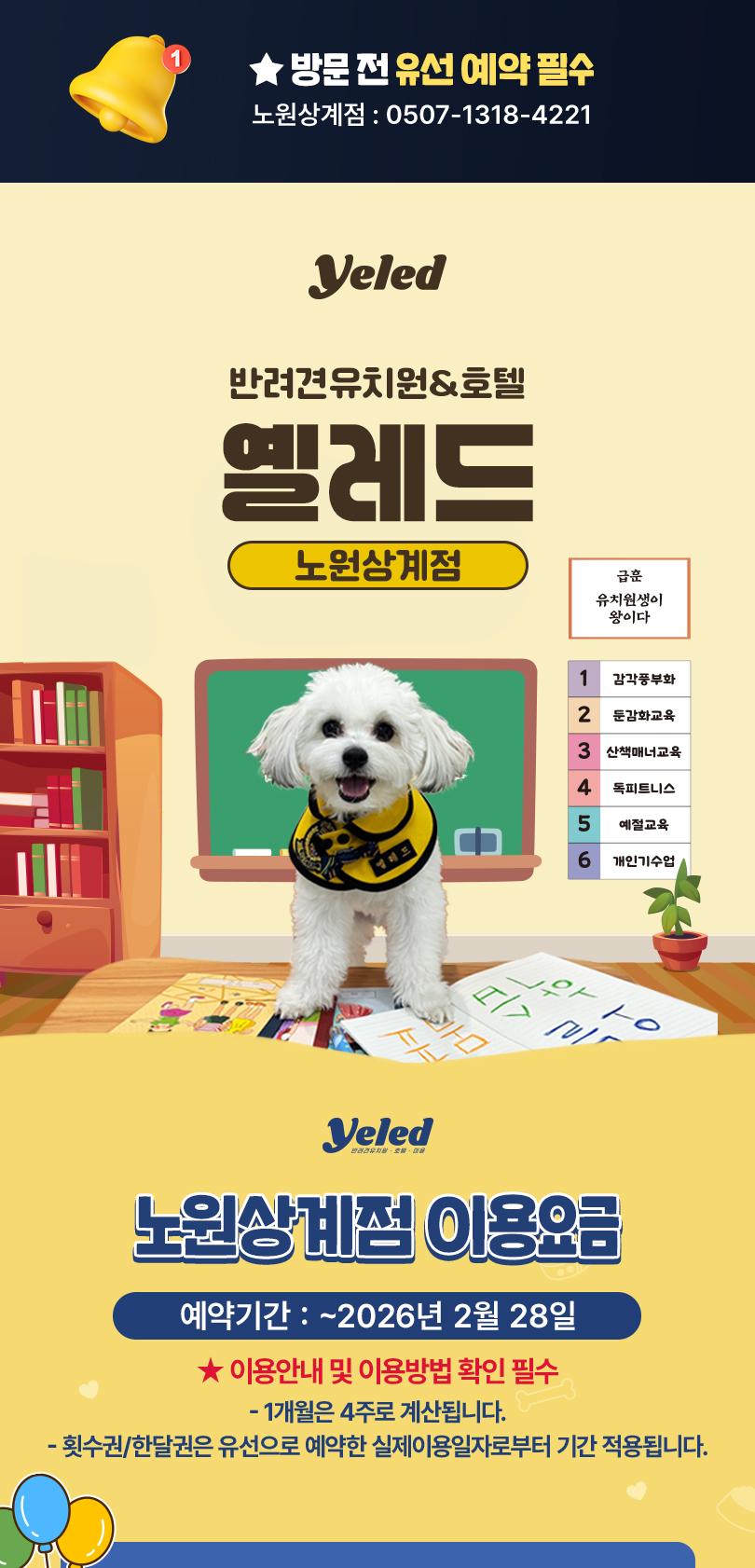 * 2. 옐레드 노원상계점(0507-1318-4221)으로 유선 예약