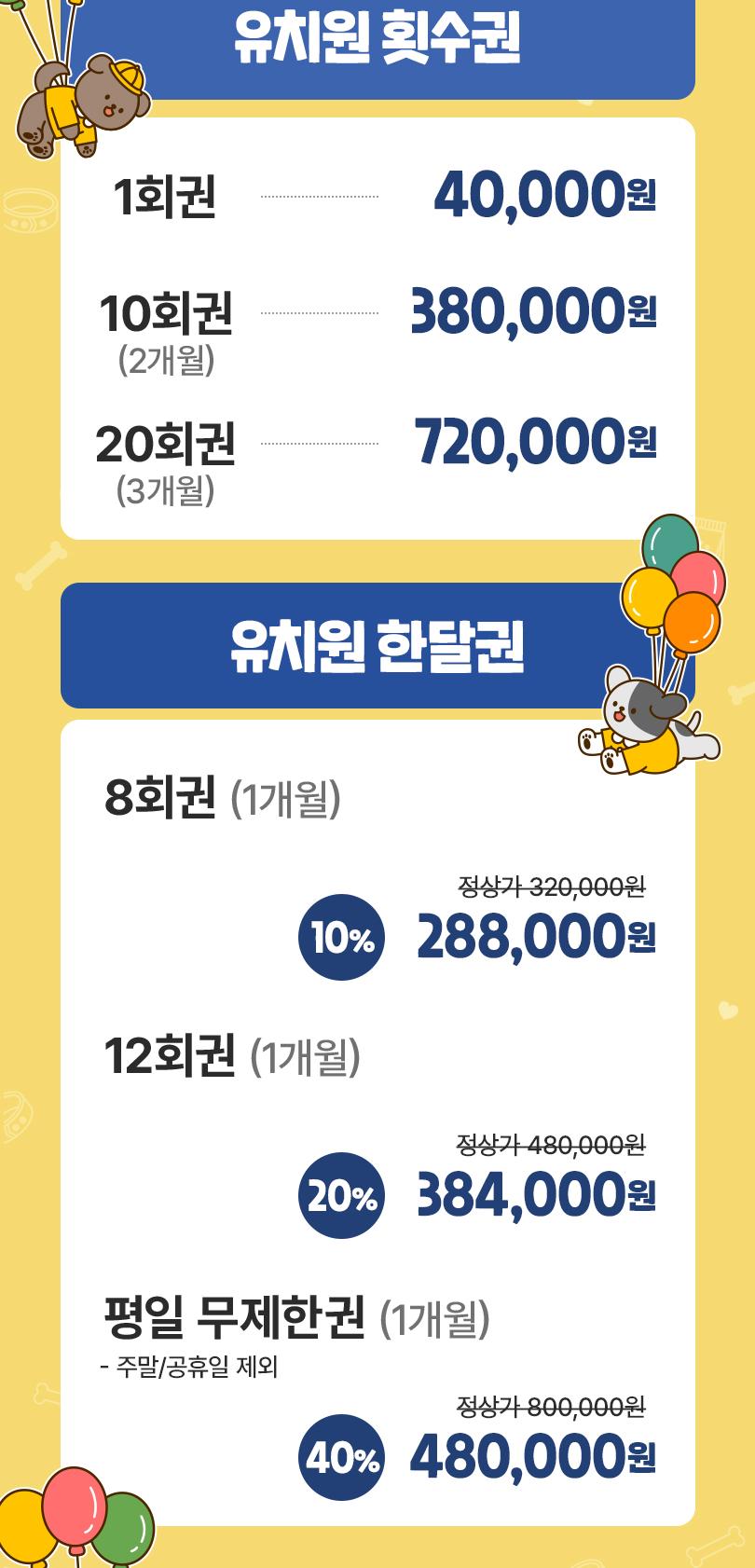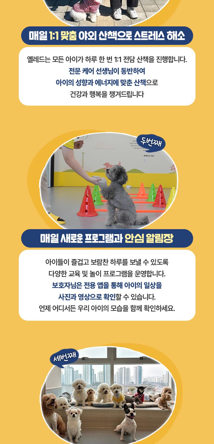 * 반려견 건강 상태는 사전에 반드시 유치원 측에 고지해야 합니다.