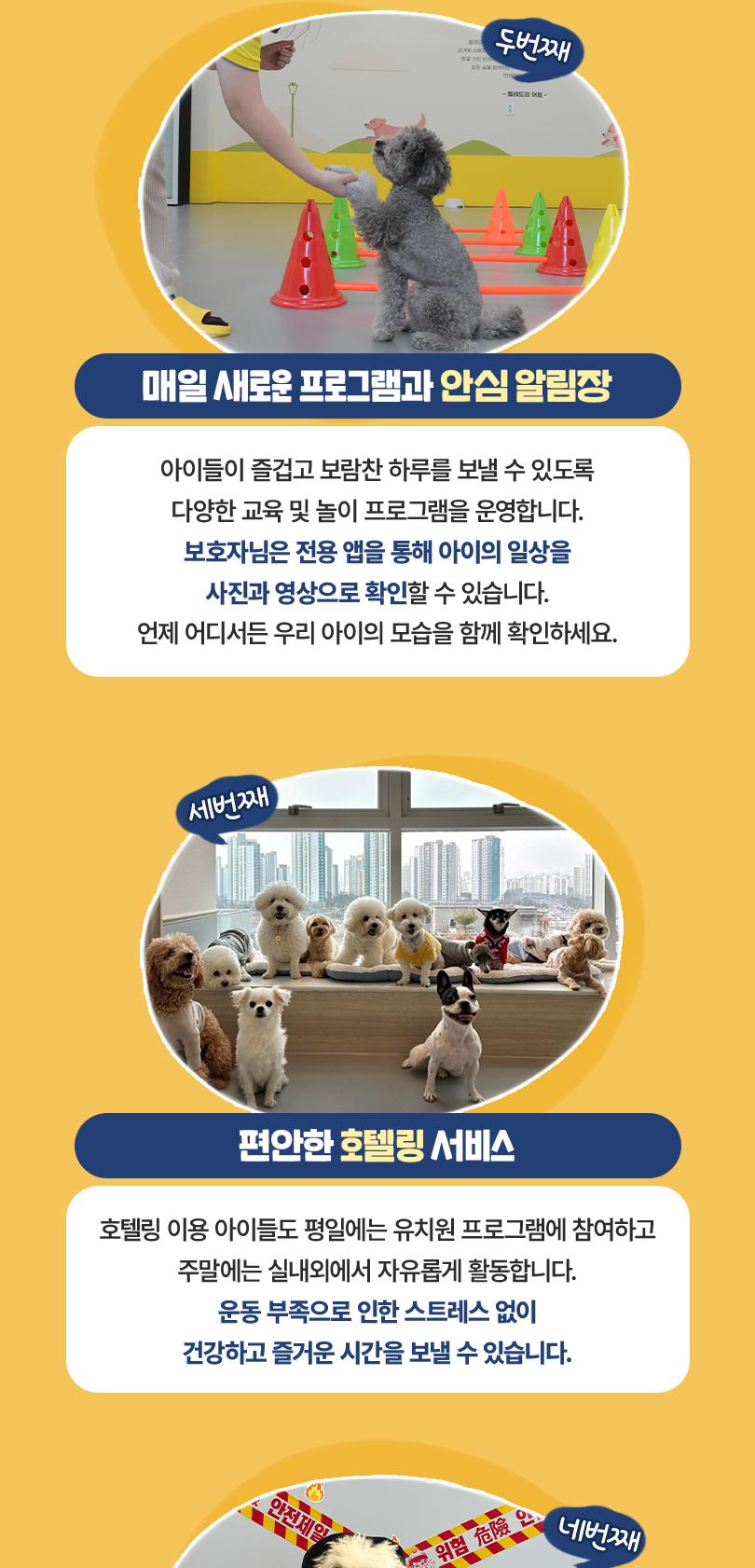 * 반려견 건강 상태는 사전에 반드시 유치원 측에 고지해야 합니다.