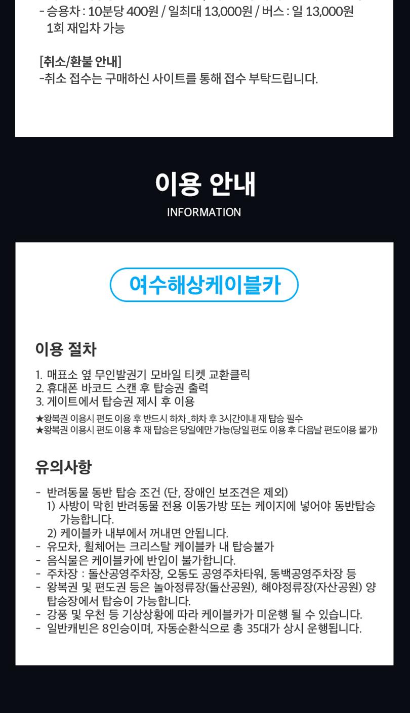 - 왕복권 및 편도권 등은 놀아정류장(돌산공원), 해야정류장(자산공원) 양 탑승장에서 탑승이 가능합니다.