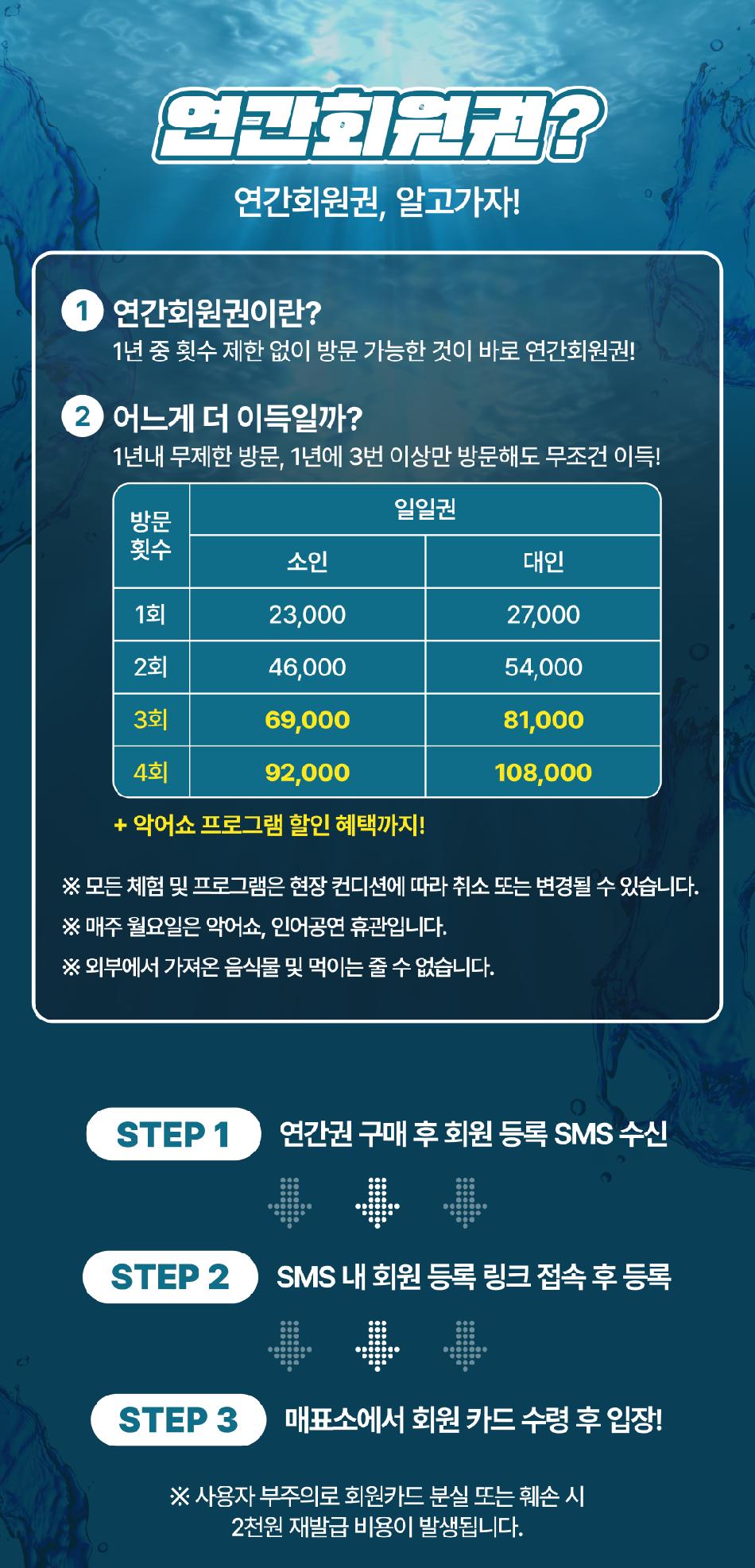 * 2. 연간권은 정보 등록일로부터 1년입니다.(등록 다음날부터 입장 가능)