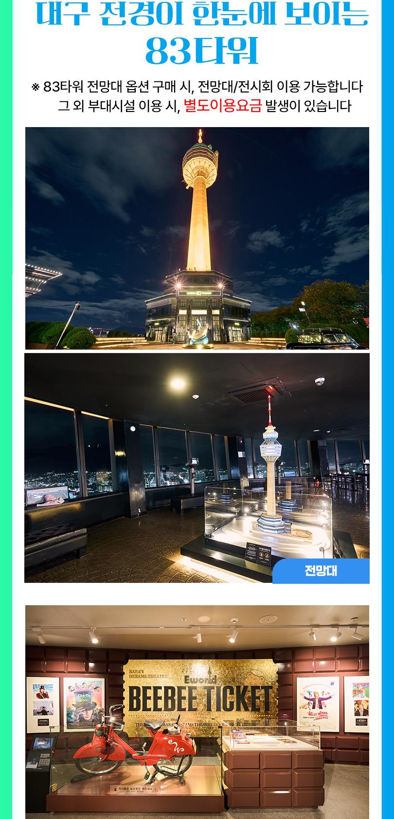* ※ 83타워 이용은 유료시설이며 이용 원할시 현장에서 추가 결제 후 이용 가능합니다.