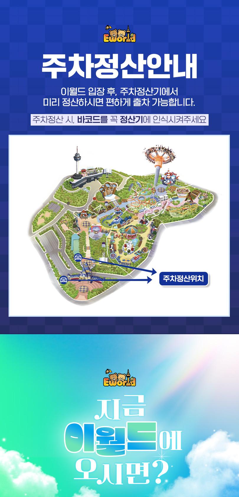 - 이월드 입장 후 사전정산 가능(하트광장 주차정산기 이용)