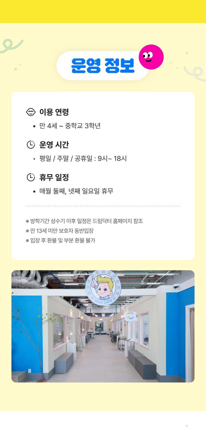 * 체험 이용 가능 연령은 만4세부터 중학교 3학년까지입니다.