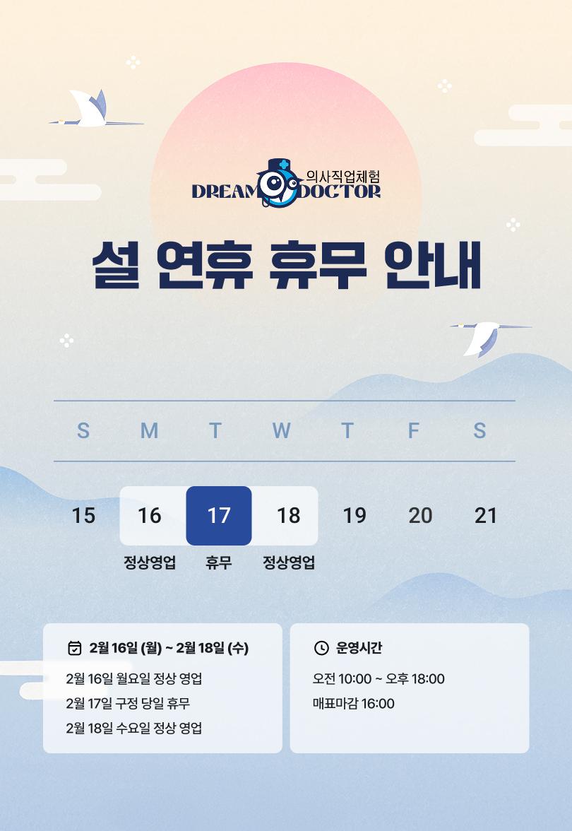 * ※ 구정 연휴: 2/16,18 정상 운영, 2/17 휴무