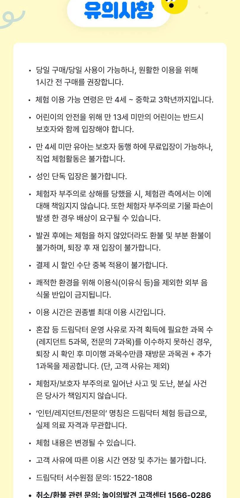* 취소/환불관련 문의 번호: 놀이의발견 고객센터 1566-0286