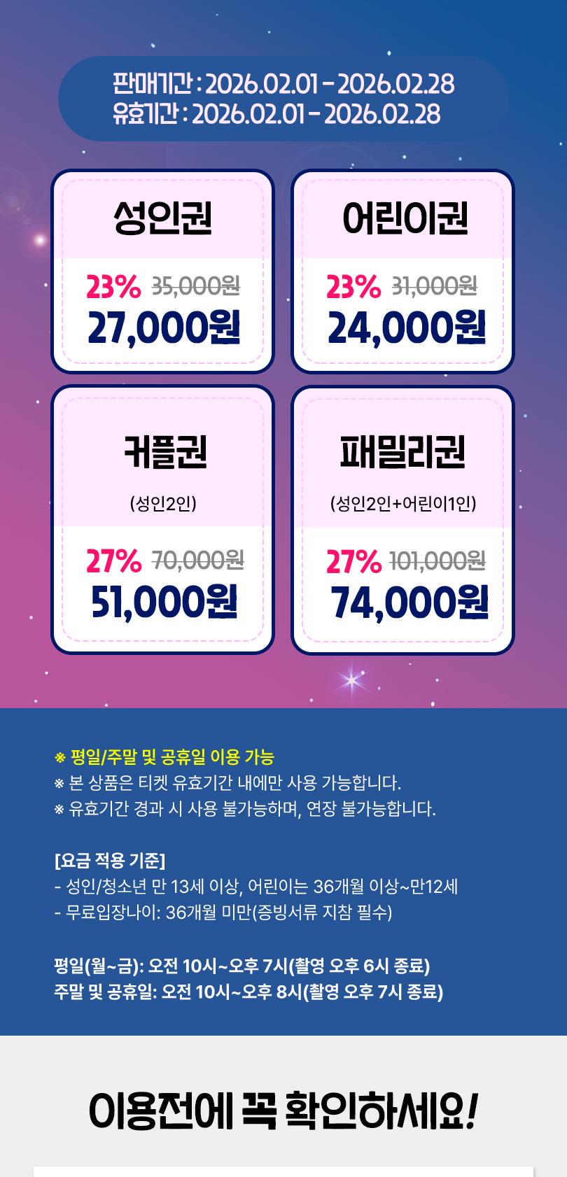 * 무료입장기준 : 36개월 미만무료입장(증빙서류 지참)