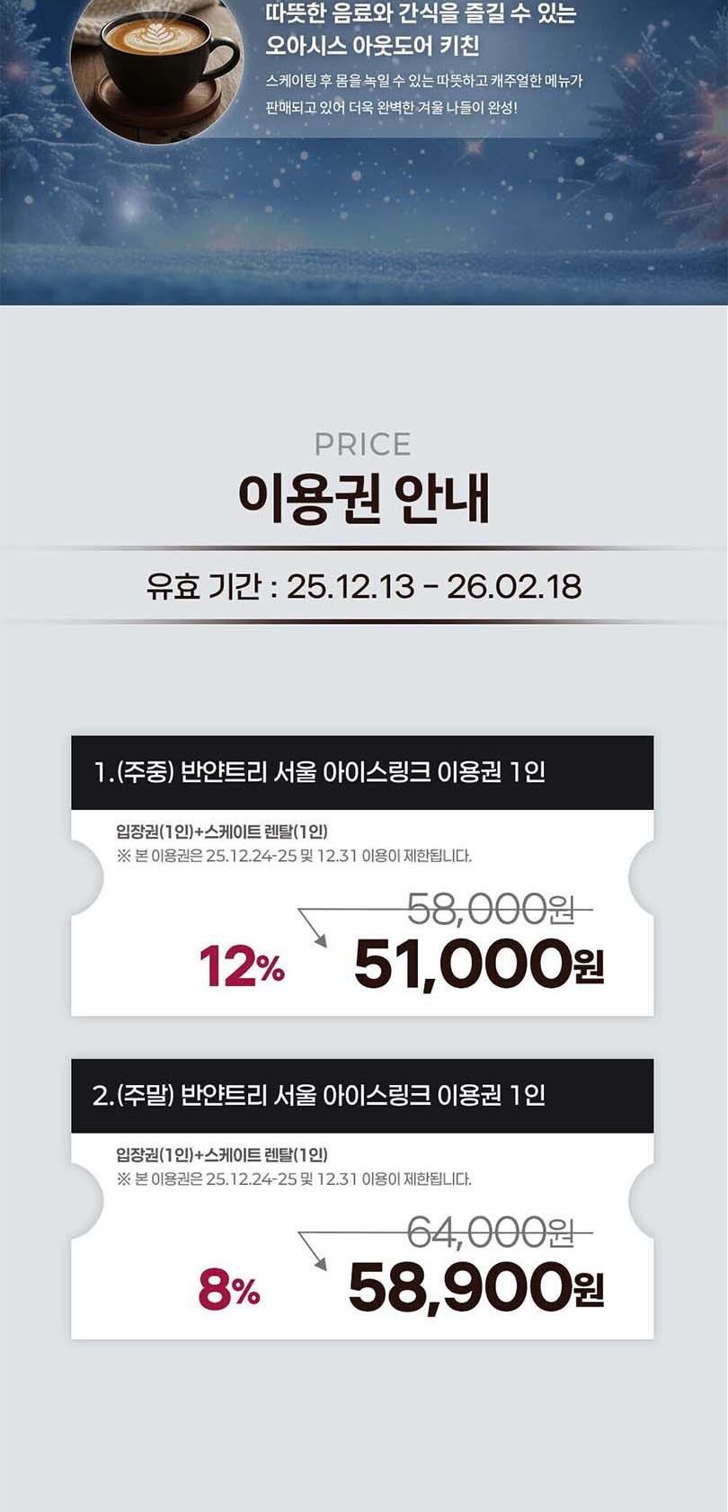 * 1. 아이스링크 이용권 또는 입장권(스케이트 미이용)을 구매하신 분에 한하여 입장 가능합니다.