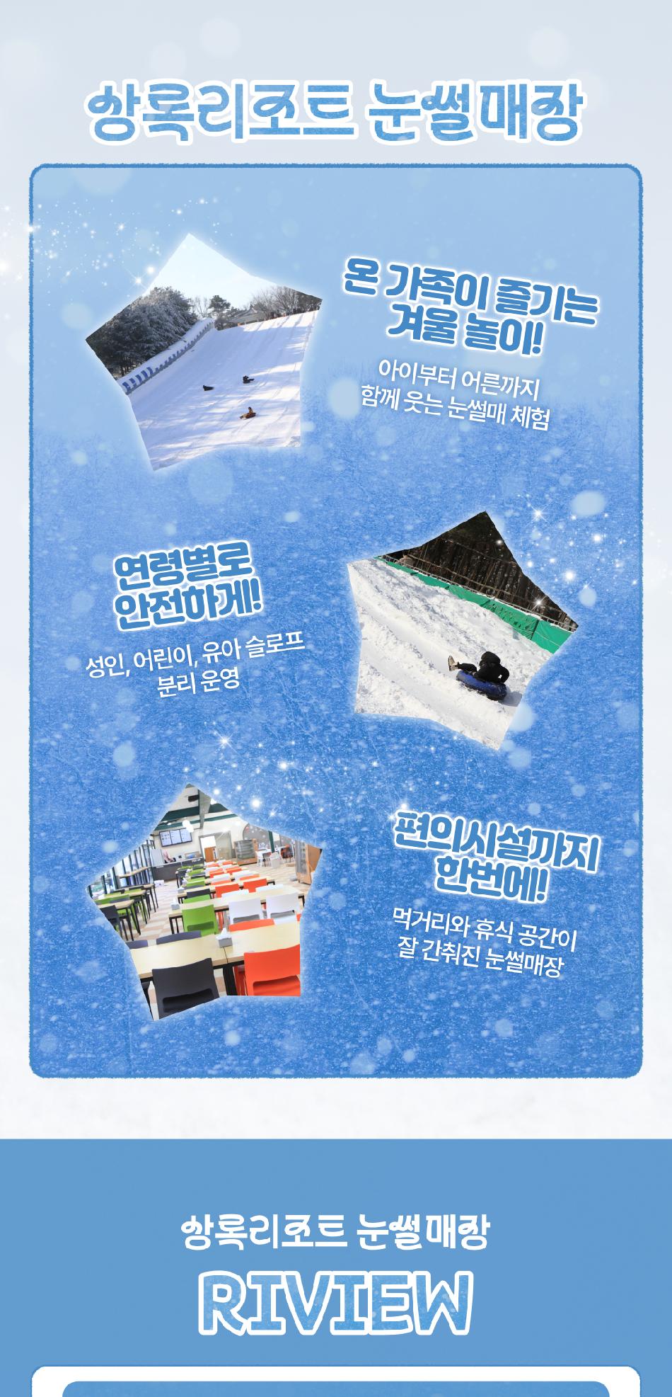 * ※ 눈썰매장은 기상상황에 따라 운영시간 및 운영기간이 변경될 수 있습니다.