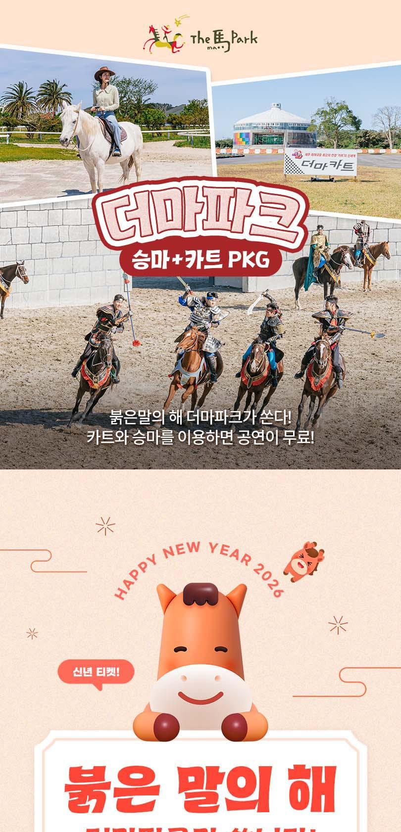 * 붉은말의 해를 맞이해 더마파크 승마+카트 PKG 이용고객에게 더마파크 공연 (10:30) 무료 입장 이벤트를 진행합니다.